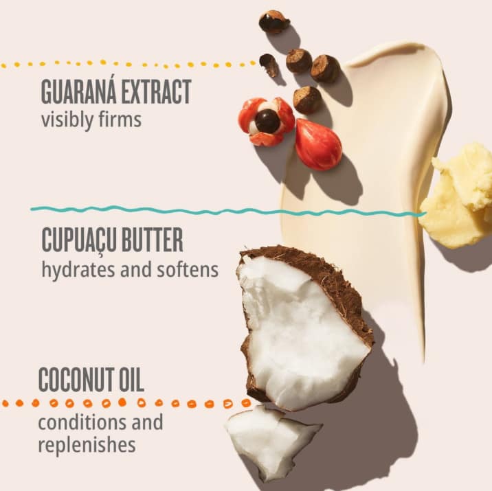 Next, apply our award-winning Brazilian Bum Bum® Cream. This fast-absorbing body cream helps to visibly tighten and smooth the look of skin. It’s packed with Guaraná Extract (a caffeine-rich Amazonian ingredient), along with nourishing oils like Cupuaçu, Açaí, and Coconut. Moreover, the Pistachio and Salted Caramel fragrance adds an irresistible warmth that lingers on your skin.