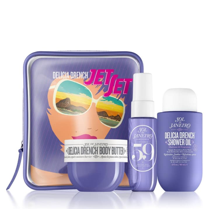 Elevate your skincare routine wherever you go with the Delícia Drench Jet Set – a luxurious trio of deeply moisturizing essentials in convenient, travel-sized formats. Featuring the intensely hydrating Delícia Drench™ Body Butter (50ml), nourishing Shower Oil (90ml), and the mood-boosting Cheirosa 59 Perfume Mist (30ml), this set delivers high-performance care for soft, soothed, and deliciously scented skin on the move.