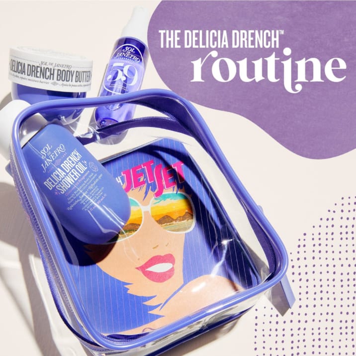 The Delícia Drench™ Jet Set is vegan, cruelty-free, and dermatologically tested. Designed to bring maximum moisture, barrier support, and a touch of joy to your body care routine, it’s the perfect companion for dry, stressed, or sensitive skin – anytime, anywhere.