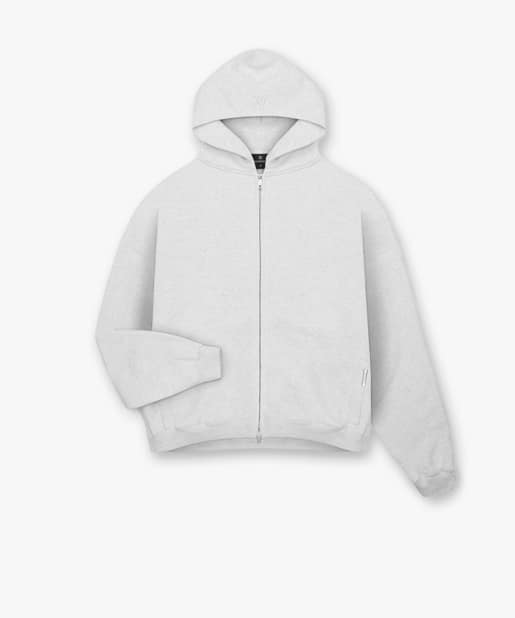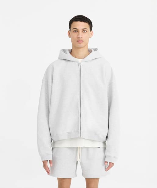 Initial Boxy Zip Through Hoodie – Ice Grey Marl