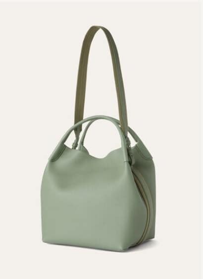 Crafted in Italy from supple calfskin leather, the Bale is both structured and soft, offering comfort and elegance in equal measure. Its generous interior holds all daily essentials, while refined hand-stitched leather handles reflect meticulous attention to detail. Carry it by hand or wear it crossbody thanks to the removable cotton and leather strap featuring a distinctive loop motif.