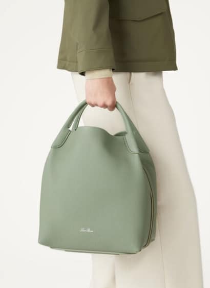 The Large Bale Bag is an elegant reinterpretation of the classic bucket bag, infused with Loro Piana’s artisanal spirit and textile tradition. Inspired by the iconic cashmere bales—bundles of raw, precious fibers—the Bale evokes softness, fluidity, and the Maison’s deep-rooted craftsmanship. Its clean, seamless silhouette and distinctive lightness make it the perfect everyday companion for the modern, sophisticated woman.