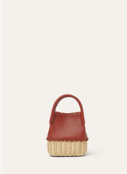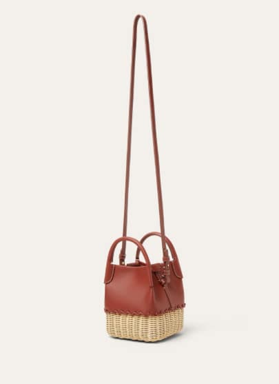 Intricately crafted in Italy, this mini bucket bag exudes effortless style. The base is fully woven in wicker for a distinctively artisanal touch, while the double-layered leather structure adds strength and softness in equal measure. Designed for modern versatility, it features a removable crossbody strap so you can carry it by hand or wear it hands-free.