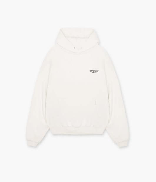 The Represent Owners’ Club Hoodie in Flat White blends elevated streetwear design with high-quality construction. Designed in the UK and crafted in Portugal, this hoodie delivers both comfort and statement style. It features a slightly oversized silhouette and a premium 100% cotton loopback jersey with a heavyweight 480gsm finish. From the moment you put it on, you’ll notice its superior softness and structured fit—thanks to pre-shrinking and piece dyeing processes that enhance durability and texture.