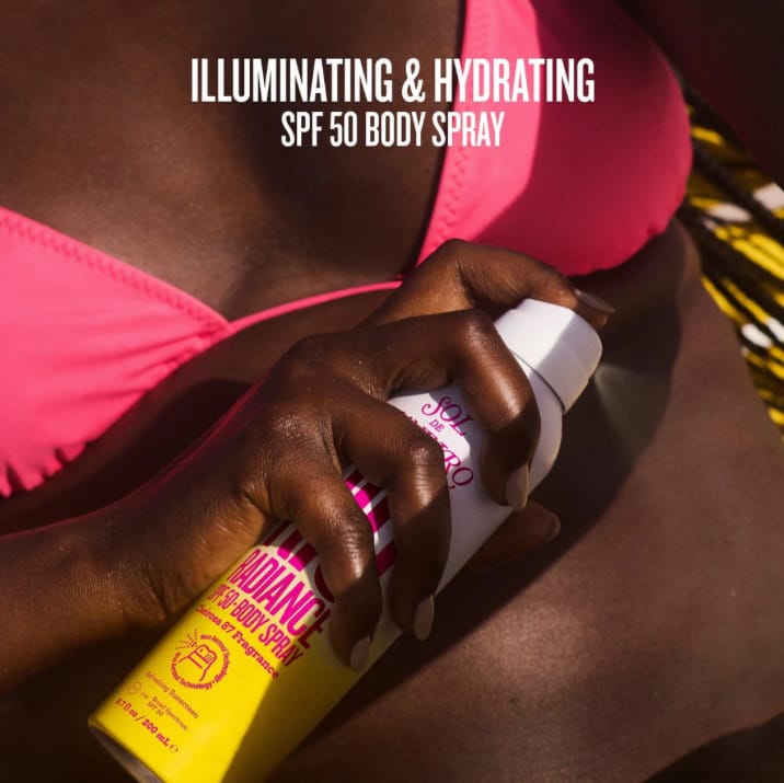 Glow while you protect. The SPF 50 Body Sunscreen Spray by Sol de Janeiro provides powerful broad-spectrum UVA/UVB protection while hydrating, refreshing, and enhancing your skin’s natural glow. This beach-ready formula features a fine mist application, quick absorption, and a luxurious tropical scent, making it the sunscreen you’ll actually want to wear every day.