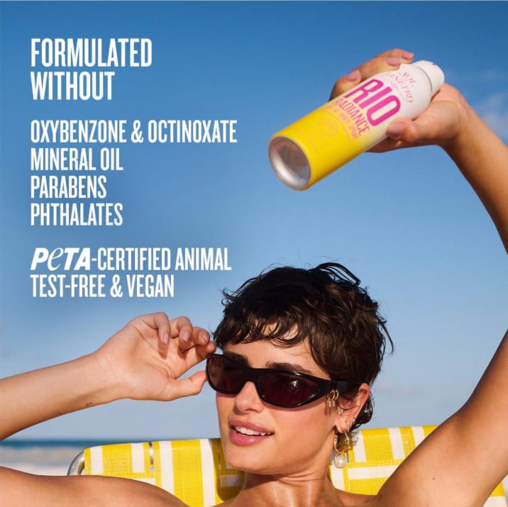 Formulated with coconut water for instant hydration and a cooling sensation, this sunscreen spray leaves behind a natural Rio Radiance™ sheen that flatters all skin tones. Whether you’re poolside or on-the-go, this non-greasy, water-resistant spray delivers SPF 50 protection while enhancing your skin’s radiance with antioxidant-rich ingredients like Vitamin C-rich pitanga extract, niacinamide, and pongamia seed extract.