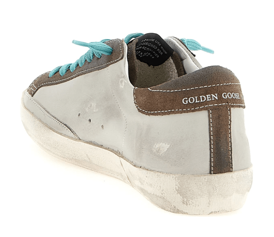 ‘Superstar’ leather sneakers with used-effect details, suede side star and heel, lace-up closure, rubber sole.